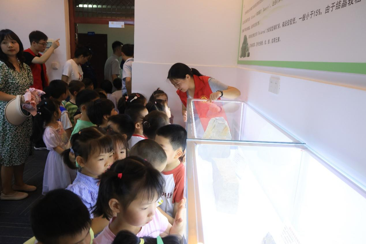 随后,在“红色矿业,绿色发展”社会实践团本研志愿者与工程大幼儿园教师的共同带领下,小朋友们走进湖北省社会科学普及基地,依次参观了中国磷矿石及绿色加工过程展厅、外国磷矿石及磷矿伴生恐龙蛋化石展厅、基础地质实验室。参观过程中,实践团讲解队队员通过生动讲解和趣味问答与小朋友们亲切互动,将理论知识与实物展示有机结合,让科学启蒙教育更加直观生动。