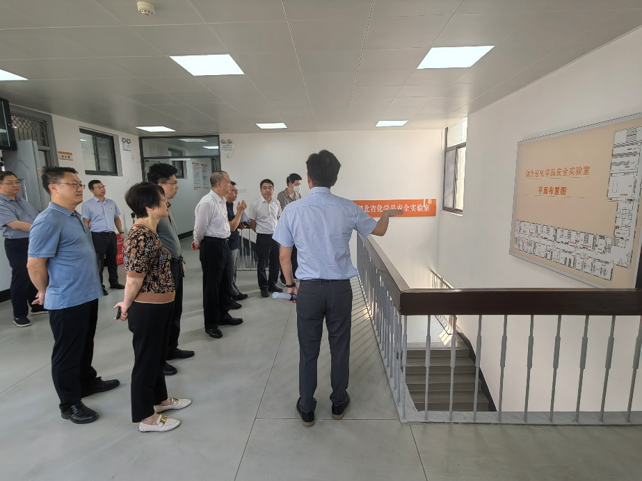 座谈会前,调研组专程前往湖北省化学品安全实验室进行实地考察。实验室技术负责人梁欢介绍了实验室具体情况。