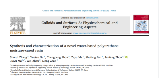 教师周俊锋指导的本科生张姝瑞、辜越涛、周程朋,在国际学术期刊《Colloids and Surfaces A: Physicochemical and Engineering Aspects》(中科院二区)发表了题为“Synthesis and characterization of a novel water-based polyurethane moisture-cured resin”的学术论文。武汉工程大学为该论文的第一署名及通讯单位。