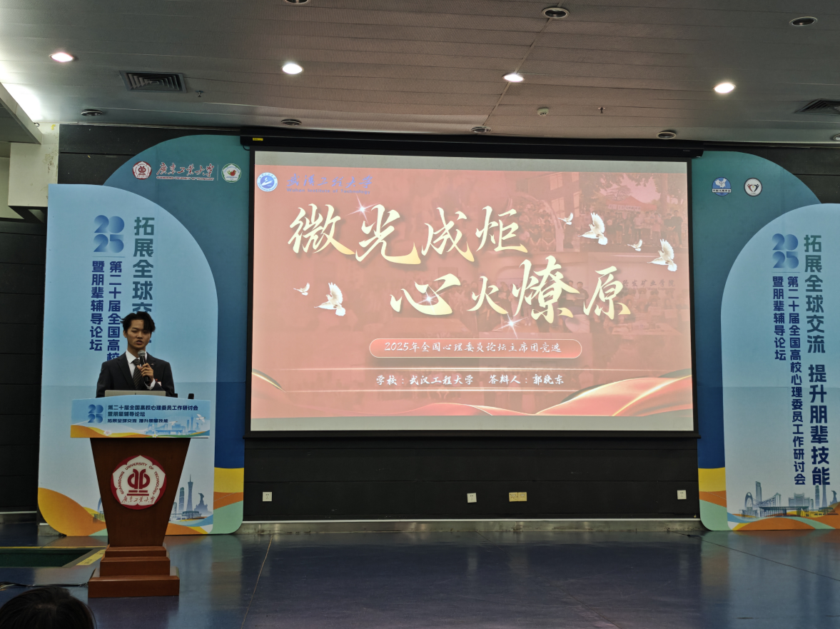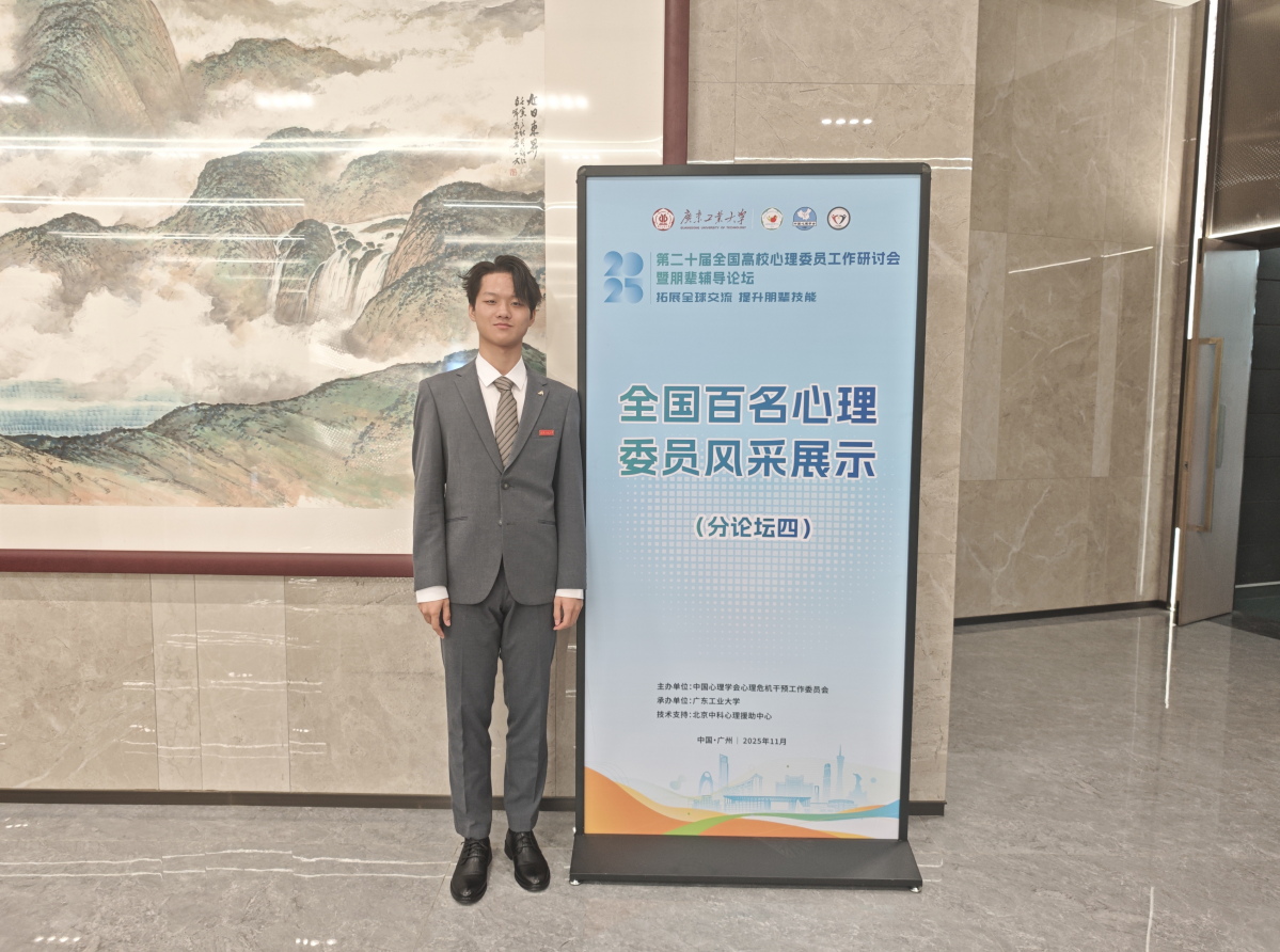 本网讯(通讯员 王耀眉 李凯)近日,在由中国心理学会心理危机干预工作委员会主办的第二十届全国高校心理委员工作研讨会中,天天足球直播 2023级本科生郭晓东凭借扎实的心理素养、清晰的朋辈辅导思路和出色的现场表现,成功入选“2025年全国百名心理委员风采展示”,并当选2025年全国心理委员论坛秘书处成员。