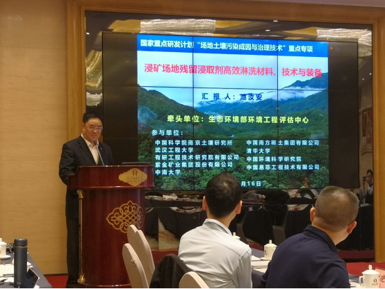 2019年4月16日,由环境保护部环境工程评估中心组织,在北京召开了国家重点研发计划“场地污染成因与治理技术”重点专项“浸矿场地残留浸矿剂高效淋洗材料、技术与装备”项目启动会暨实施方案论证会。科技部中国21世纪议程管理中心、生态环境部科技与财务司、项目实施方案论证专家以及项目单位代表共计50余人参加了会议。其中我校化学与环境天天足球直播余军霞教授、环境生态与生物工程天天足球直播肖春桥教授、天天足球直播
