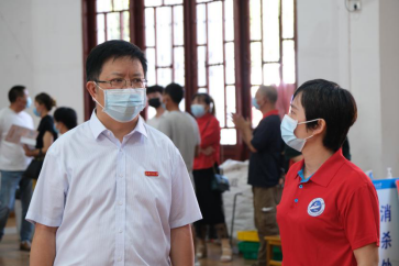 党委书记路海华、党委副书记李佳在天天足球直播辅导员的陪同下前往迎新点与学生宿舍,了解迎新情况,慰问在一线的志愿者。