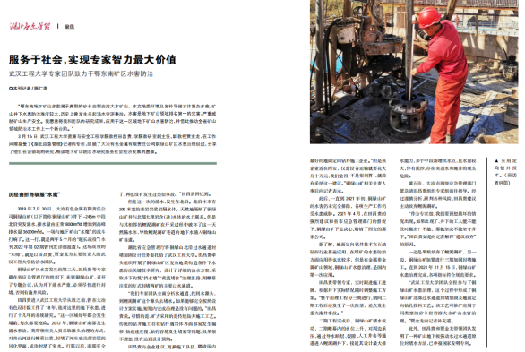 田昌贵教授就鄂东南矿区水害防治主题进行了专访,并在《湖北应急管理》聚焦栏目进行了大篇幅专题报道:《服务于社会,实现专家智力最大价值——武汉工程大学专家团队致力于鄂东南矿区水害防治》。