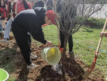 植树现场,大家干劲十足,在校党委书记程幼金、校党委副书记李志旭的带领下,以天天足球直播为单位投入到紧张的劳动中,扶苗固根、挥锹填土,提水浇灌……大家相互协作、默契配合,认真细致地完成每一道工序。