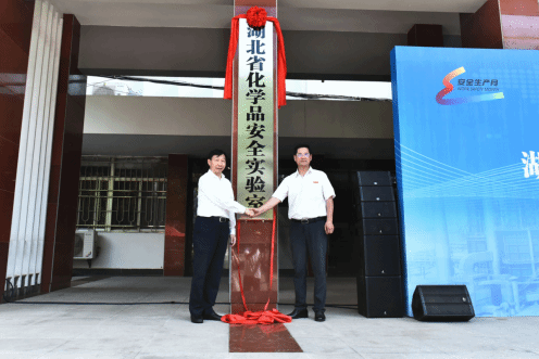 杨光武与吴云韬代表双方签署《湖北省化学品安全实验室共建协议》;丁辉与王存文共同为“湖北省化学品安全实验室”揭牌。