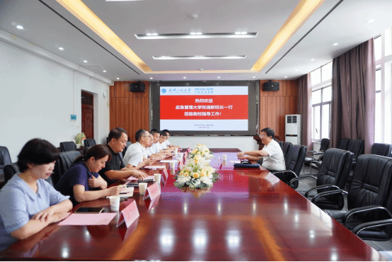 指导交流,武汉工程大学党委常委、副书记李志旭、武汉工程大学教务处副处长周德红、安全应急教研室主任雷克江、书记张民波、副主任邱丹丹、吴燕玲、王肸杰和曹承阳参与座谈交流,周德红主持会议。