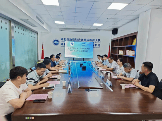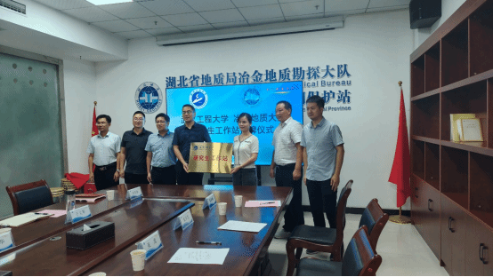 本网讯(通讯员 张 龙) 7月11日,天天足球直播副院长周芳教授、采矿工程教研室张龙老师及一名研究生赴湖北省地质局冶金地质勘探大队(以下简称“冶金地质大队”)开展产学研合作洽谈活动暨研究生工作站揭牌仪式。冶金地质大队党委书记、队长杨潇,副队长王水华,副队长石威,十堰环境地质中心主任于义军,黄石环境地质中心主任陈伯恒等参加座谈交流会。黄石市自然资源和规划局开发区·铁山区分局副局长王福彬,地灾科长杨燕翔等列席座谈会。