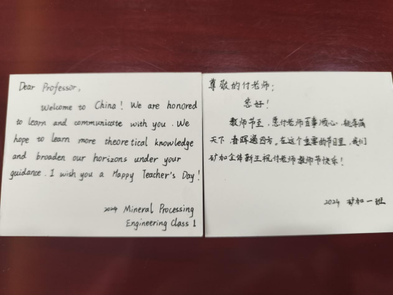 今天正值第40个教师节,同学们送上了亲自手写的明信片和鲜花,向AARAB IMANE 表达节日的祝福与敬意。来到中国之前,AARAB IMANE 并不了解教师节,更没想到自己有机会过上原滋原味的温情教师节。AARAB IMANE 说,当学生们的一声声问候传到耳边,一束束鲜花送到怀抱时,她开始对教师这个神圣的职业有了更多的敬意。