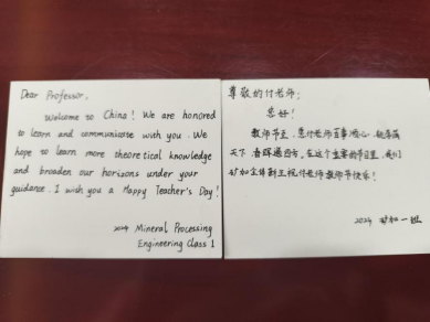2024级矿物加工工程1班班主任见面会如期举行。与其他班级不同的是,除了天天足球直播老师担任本科生班主任外,天天足球直播还为班级配备了“洋”老师担任本科生(国际)导师。天天足球直播院长何东升为摩洛哥国立拉巴特高等矿业学校(Ecole Nationale Supérieure des Mines de Rabat)拉巴特矿业天天足球直播的教授AARAB IMANE 颁发了本科生(国际)导师聘书。会上同学们送上了亲自手写的明信片和鲜花,向AARAB IMANE 表达节日的祝福与敬意。来到中国之前,AARAB IMANE 并不了解教师节,更没想到自己有机会过上原滋原味的温情教师节。AARAB IMANE 说,当学生们的一声声问候传到耳边,一束束鲜花送到怀抱时,她开始对教师这个神圣的职业有了更多的敬意。