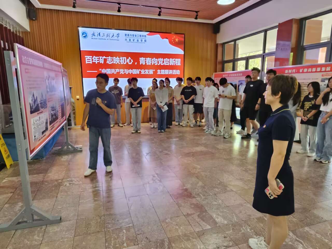 来自学生党支部7名本科生研究生党员共同完成了一场跨越时空的精神对话。通过“百年矿志映初心,青春向党启新程”主题展讲,主讲人从开滦煤矿工人运动起义、到毛主席视察的唯一铁矿山——大冶铁矿、再到新中国的第一炉铁水——武汉钢铁,直至新时代习近平总书记视察兴发集团提出“共抓大保护,不搞大开发”,用详实史料和生动讲述,勾勒出在中国共产党的领导下矿业发展的壮阔画卷。