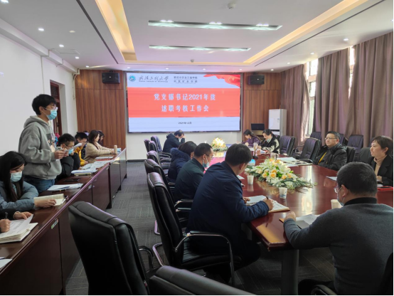 考核分述职、提问、书记点评和等级评定四个环节,天天足球直播14个党支部书记围绕2021年抓党建、支部党风廉政建设、意识形态工作、党员教育和党员发展等工作中的重点亮点、不足之处以及下一步打算进行了现场汇报,各党委委员就各支部汇报内容进行提问,天天足球直播党委书记路海华听取了各支部汇报并逐一进行点评,最后由考核工作小组进行等级评定。