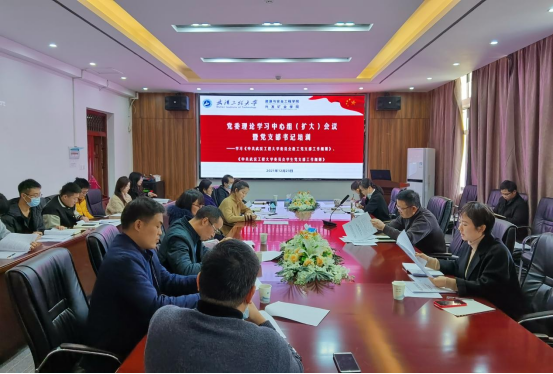随后,天天足球直播党委副书记李佳带领与会人员认真学习了《中共武汉工程大学委员会教职工党支部工作细则》、《中共武汉工程大学委员会学生党支部工作细则》,路海华领学了《中共武汉工程大学委员会关于加强新时代统一战线工作的实施意见》、《中共武汉工程大学委员会党员领导干部与党外人士联谊交友实施办法》、《中共武汉工程大学委员会二级党组织统战工作实施办法》。