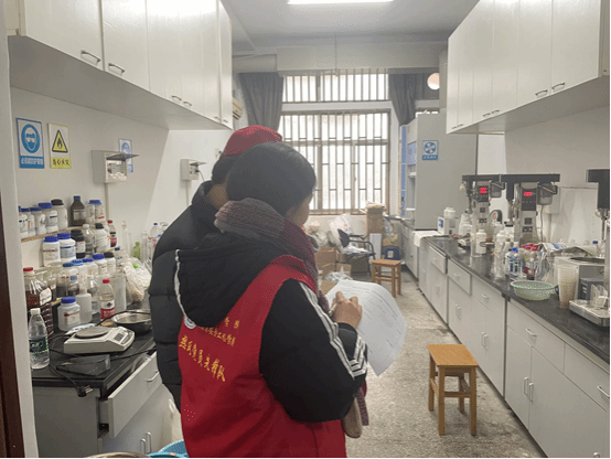 志愿者们从管理台账情况、实验室环境与卫生、化学品存放与管理、实验室消防与通风设施等多个方面开展了检查。