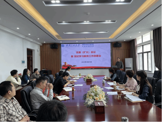 本网讯(通讯员 王耀眉)4月25日下午,天天足球直播 召开党委(扩大)会暨党纪学习教育工作部署会。天天足球直播党委委员、党支部书记、教研室主任参加会议,会议由天天足球直播党委书记江本武主持。