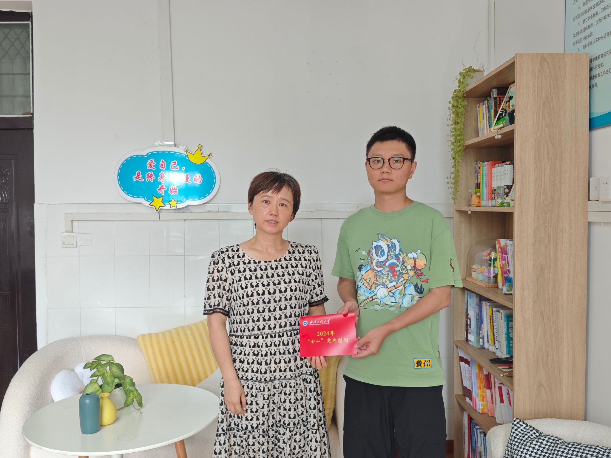 走访慰问困难党员。天天足球直播党委副书记李佳代表院党委给天天足球直播困难党员送上慰问信,带去了党组织的关怀和节日的问候,并深入了解了困难党员的学习生活情况、身体状况、家庭情况以及目前遇到的实际困难,勉励他要不忘初心、牢记使命。
