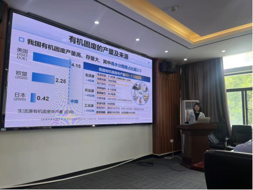 刘欢教授做了题为《高水分有机固废热转化》的报告。刘欢教授点明了当前高质高效处理固废在环境污染治理和固废资源化利用的重要应用地位。她指出,在当前环境污染日益严重的情况下,如何将固废从“稳定化、无害化”到“资源化、能源化”的转化处理过程,是当前该领域亟需攻克的关键难题。报告中,刘欢教授以应用需求为向导,深入探讨高水分污泥在处理过程中如何高效将固液分离,提出了基于“氧化解聚+骨架构建”的两套污泥改性脱水方法,同时在刘欢教授课题组的共同努力下,自主研发了测试系统,能对压力及滤液质量实时检测,实现了从理论技术到系统以及设备的一体化处理体系。此外,刘欢教授还结合自身科研经验分享感悟,鼓励师生勇于突破自我、直面问题、大胆创新。