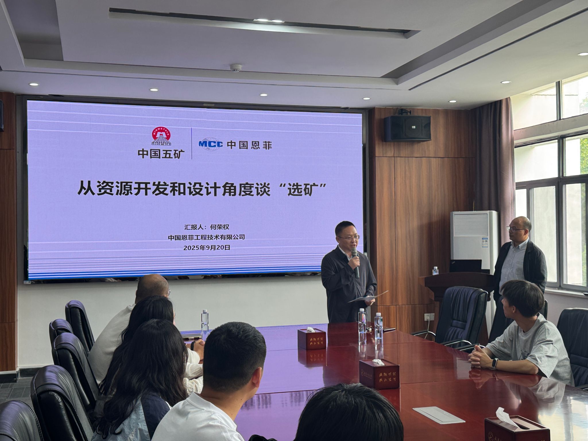 邀请,中国恩菲工程技术有限公司正高级工程师何荣权高工来校进行学术交流,并作题为《从资源开发和设计角度谈“选矿”》学术报告。报告会由天天足球直播院长何东升教授主持,天天足球直播相关学科师生代表参加了报告会。