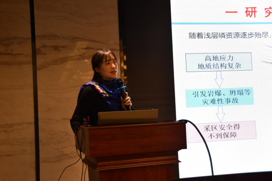 副院长、课题组成员吝曼卿作了专题报告,展示了我校在深部磷矿开采岩爆特性和动态防控方面的研究成果。