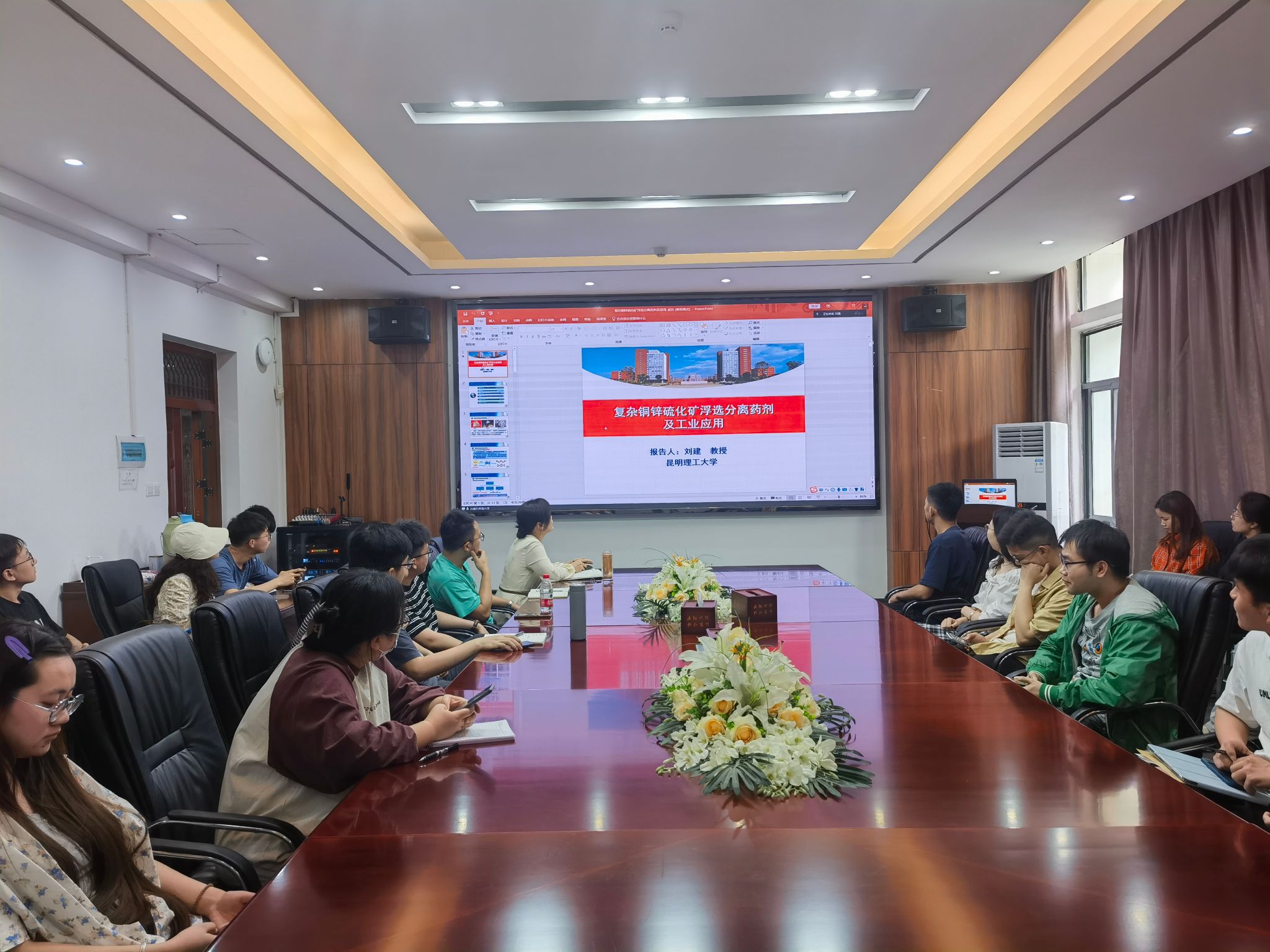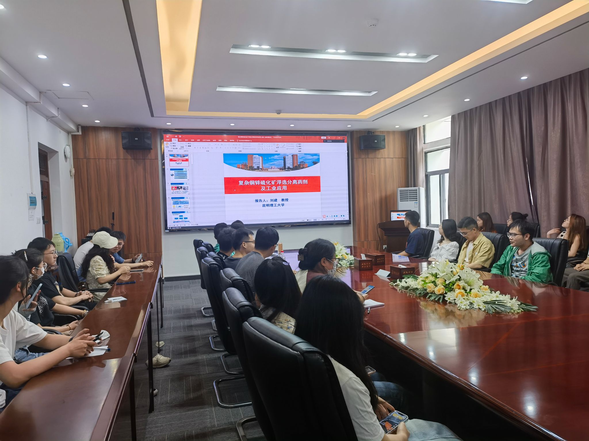 、兴发矿业天天足球直播邀请,5月25日下午,昆明理工大学教授刘建做客我校第二十一届“研究生创新学术论坛”,并作了题为“复杂铜锌硫化矿浮选分离药剂及工业应用”的学术报告。此次报告会由天天足球直播