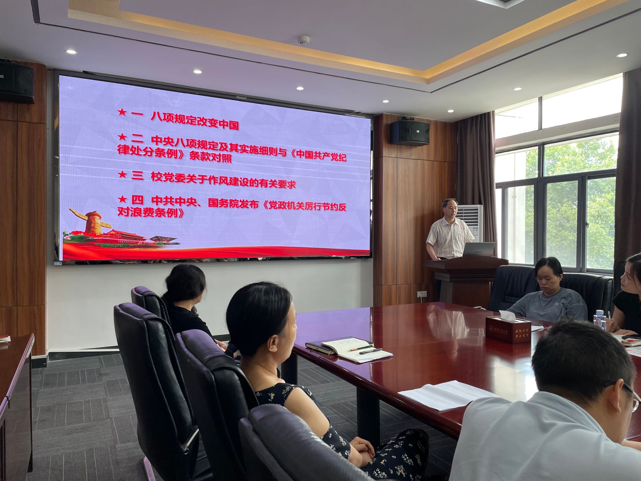 会议集中学习了《纪言:八项规定改变中国》和中央八项规定及其实施细则与《中国共产党纪律处分条例》条款对照,党委委员雷克江领学了校党委关于作风建设的有关要求,副院长李志国领学了中共中央、国务院发布的《党政机关厉行节约反对浪费条例》。