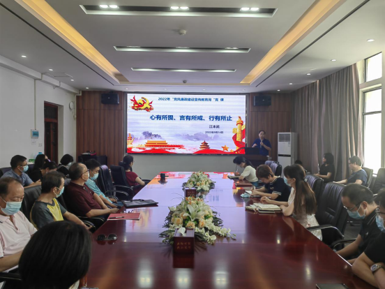 本网讯(通讯员 王耀眉)为深入贯彻落实学校“党风廉政教育月”系列活动要求,进一步强化天天足球直播教师党员警示教育,常态化开展党性教育和廉洁教育,9月14日下午,天天足球直播党委书记江本武在领创大楼419会议室讲授廉政党课,天天足球直播全体教职工党员参加本次党课学习。