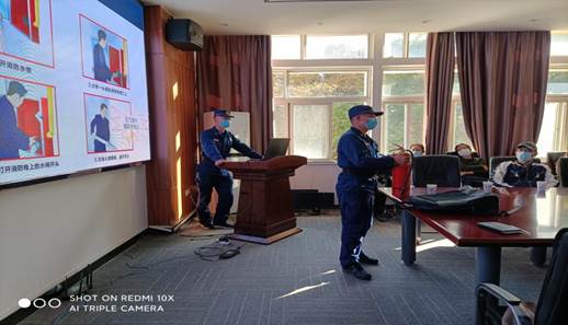 吴教员详细的讲解了火灾的种类和危害,消防器材的类型和使用、火灾的扑救方式、如何科学的求助、逃生和自救等消防知识,并带领大家实地演练了如何正确、安全的使用消防器材。