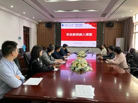 周芳院长助理汇报了“安全教育嵌入课堂”制度的建设进展,演示了工作小组编写的国家安全观、意识形态安全、公共安全应急知识、网络安全、财产安全和物品保管、人身安全、实验室安全、心理健康等方面的安全教育讲义。