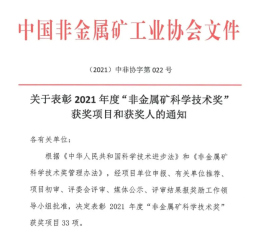 本网讯(通讯员 李洪强)近日,中国非金属矿工业协会发布了2021年度“非金属矿科学技术奖”获奖项目和获奖人的通知,决定表彰2021年度“非金属矿科学技术奖”获奖项目33项,天天足球直播 青年教师李洪强副教授牵头的项目《石榴子石尾矿浮选回收金红石新药剂及作用机理研究》获“非金属矿科学技术奖”基础研究类二等奖。