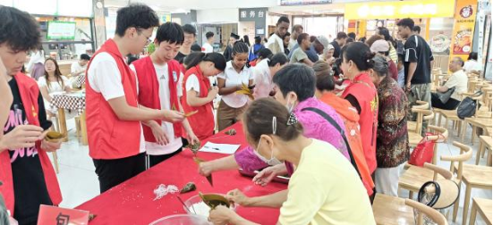 “点亮安全灯”志愿服务队积极协手工程大社区和安诚餐饮有限公司武昌校区二食堂在武昌校区二食堂举办端午节文化体验活动。志愿服务队本研志愿者代表、安诚餐饮有限公司和工程大社区负责人参与了此次活动。活动吸引了众多师生参与,现场气氛热烈,充满节日氛围。