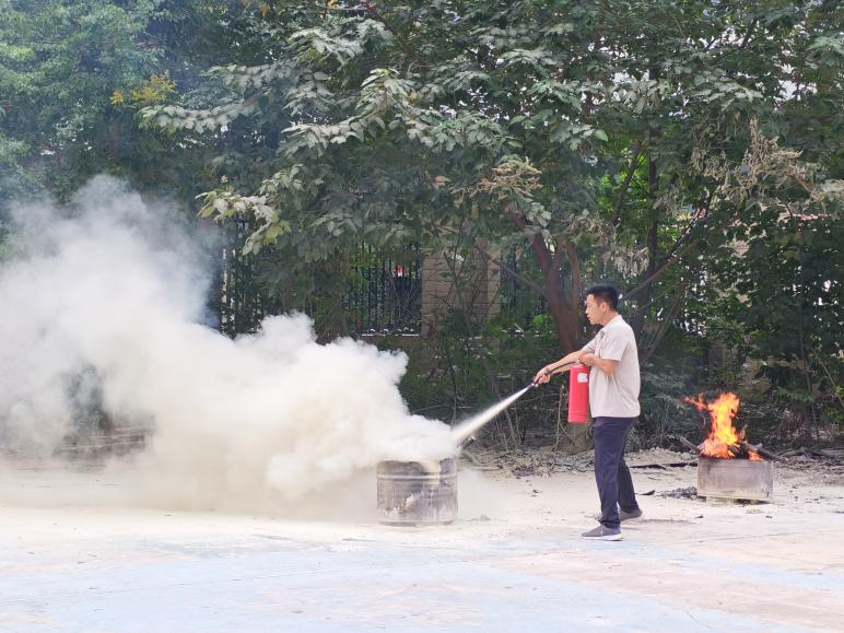 在保卫处工作人员的精心指导和安全保障下,同学们分批上前,亲身体验了如何使用干粉灭火器扑灭模拟初起火源。从最初的紧张生疏到后来的果断操作,同学们在实战中真正掌握了灭火技能,提升了面对火情时的心理素质和应急处置能力。