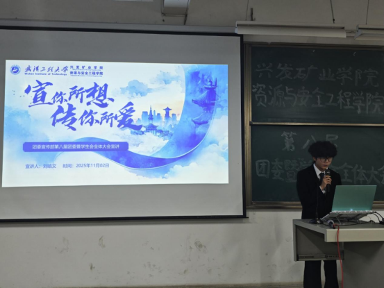 第八届团委暨学生会全体大会在武昌校区W2102教室隆重召开。天天足球直播团委指导老师耿胡锐、2025级辅导员王祥祥、学生团委副主席王艺樨、主席团成员高雅思,第八届团委暨学生会全体成员参加了此次活动。