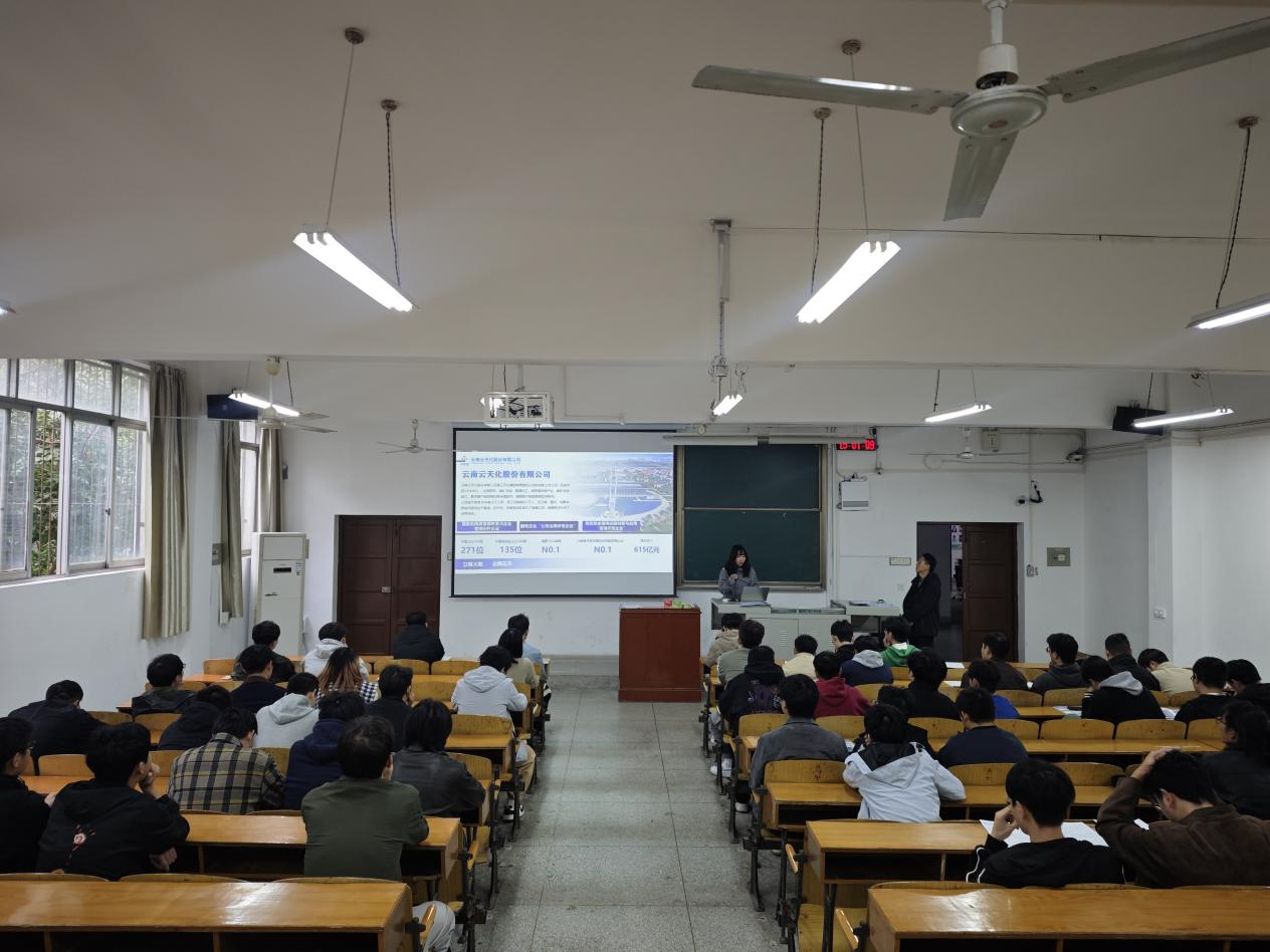 讲座中,宋岩结合个人学业与职业发展经历,系统介绍了云天化集团的岗位需求、准入门槛、职业发展路径及未来成长空间,引导同学们在专业背景下开展职业自我认知与科学规划,深化了学生对行业前景和个人定位的理解。