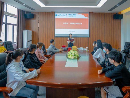 2022年学风建设月实施方案》安排部署,5月20日,天天足球直播在领创大楼414会议室举行了“热风杯”学霸笔记颁奖仪式,相关获奖学生和天天足球直播辅导员郑浩然参加了仪式。