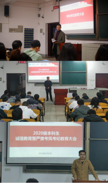 近日,天天足球直播还开展全体本科生诚信教育暨考风考纪大会,天天足球直播辅导员孙奕、郑浩然对本科四个年级分别开展年级大会,结合案例和中华民族优良传统美德加强了诚信教育;推荐介绍了学习的策略方法以及如何高效分配规划时间复习备考;重点强调了考风考纪的重要性,对考试本质进行了分析及正面引导,带领大家进一步学习了解学生手册中关于考试违规违纪的处理办法和国家有关法律的规定,并讲解了考试违纪处分的具体案例,提高了同学们的思想认识并起到了较好的警示作用。