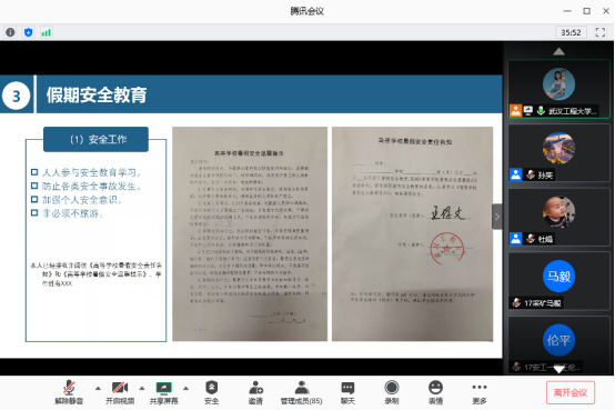 通过QQ直播和腾讯会议,分别召开“2018-2019级本科生2020年暑假安全教育大会”、“2017级本科生2020年暑假安全教育大会”和“2018-2019级研究生2020年暑假安全教育大会”。会议由天天足球直播党委副书记李佳主持。
