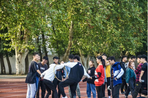 秋风徐徐吹来,和煦的阳光照耀在同学们的笑脸上,此时趣味项目正在操场上如火如茶的进行着。比赛前,各项目负责人有条有理的将同学们分成各个小组,各小组在赛前认真练习,为了能够在比赛中更胜一筹,每位成员都投入其中,充分发挥自身优势,积极讨论各种方案。