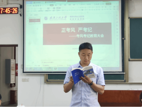 本网讯(通讯员 孙 奕)为端正考风,严肃考纪,营造安全诚信、公平公正的考试环境,提高考试的公信力和满意度,构建良好的考试秩序,5月23日下午,天天足球直播在武昌校区2教2101教室开展了以“正考风 严考纪”为主题的考风考纪教育大会,2023级全体本科生参加。