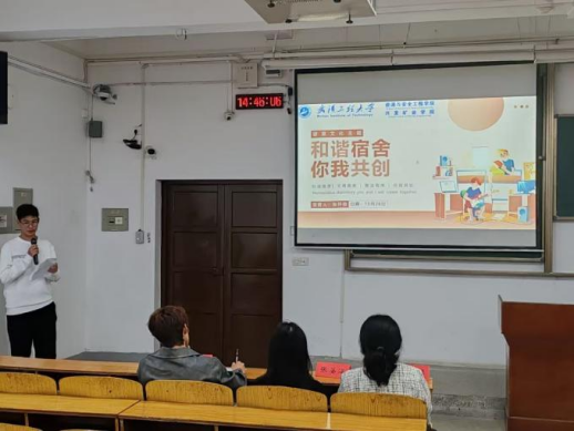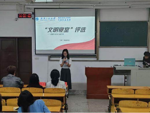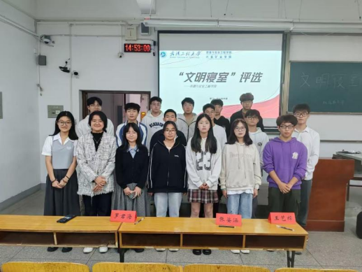 团委暨学生会权益服务部在武昌校区W2101教室组织开展了“文明寝室”评选活动。天天足球直播新媒体中心主要负责人罗君海、团委组织部主要负责人王艺樨、学术调研部主要负责人张姿涵以及参选寝室代表参加了此次活动。