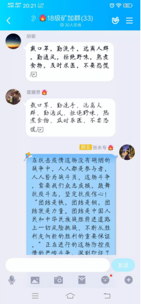在班会上,各年级同学认真学习了《高等学校新型冠状病毒肺炎防控指南》和《新型冠状病毒肺炎健康教育手册》,通过深入学习,同学们对新型冠状病毒有了充分的了解,对它的传播途径和传播方式有了充分的掌握。此后,同学们还认真了解了如何区别流感和新型冠状病毒。对采取隔离的原因以及措施、外出时需要注意的事项、对于无症状感染者的关注和预防,防止同学疏忽大意,进行了科普学习。同时在班会上积极了解每位同学所在地的疫情情况,及时完成心理疏导。同时也提醒同学们积极做好复学的准备。