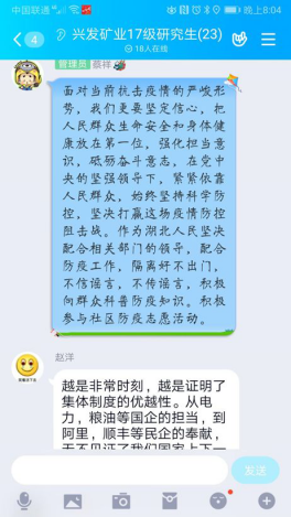 为充分发挥网络育人、网络思想引领的功能,各班班会借助企业微信、钉钉直播、腾讯会议平台、微信群、QQ群等各类网络平台等方式进行,线上主题班会,共话疫情,共克时艰。