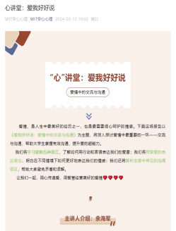 组织开展了一场以“暖春三月 关爱心理”为主题的班会。全体本科生、研究生班级共计一千余人参与活动。