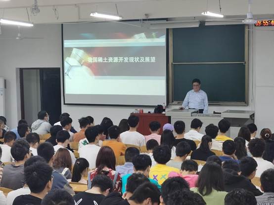 池教授不仅讲解了稀土的相关知识,还穿插介绍了他自身的学习经历,教育学生作为新时代的青年,要努力学习专业知识和科学文化知识,自强不息,莫负青春的芳华,培养高尚的道德情操。作为当代最有创造力、最有活力、最年轻的力量,应该学习好、落实好十九大精神,不断扩宽自己的知识面,提高实践能力,砥砺前行,艰苦奋斗,勇于攀登,用奋斗书写无愧于时代的人生新篇章。池汝安院长的精彩分享让在场的师生开阔了学术视野,对专业基础研究和理论学习均起到极好的推进作用。
