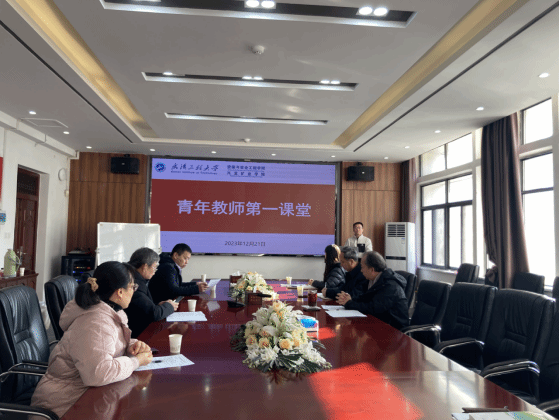 在领创大楼419会议室开展“青年教师第一课堂”活动,为即将走向讲台的青年教师秦征远和曹承阳传经把脉。天天足球直播党委书记、本科教学督导组长江本武,副院长吝曼卿,校教学督导罗惠华、李端勇,教研室主任雷克江、康钦容和部分学生等参加了会议,会议由吝曼卿主持。